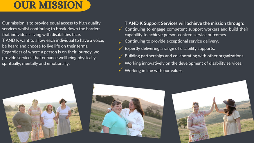T and K Support Services is dedicated to enhancing the quality of life for individuals with disabilities through personalised care and holistic support. We offer assistance with daily living, engaging day programs, and home support. Our client relations team works closely with participants to understand their unique needs and aspirations. Trained in both first aid and mental health first aid, our compassionate team ensures that every participant receives the care and support they deserve.